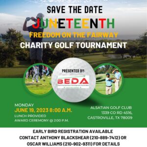 BEDA Juneteenth Golf EventBy Laura Reed / June 19, 2023 Share via: Facebook Twitter Email More Date/Time Date(s) - 06/19/20238:00 am Categories No Categories Additional Info Share via: Facebook Twitter Email More